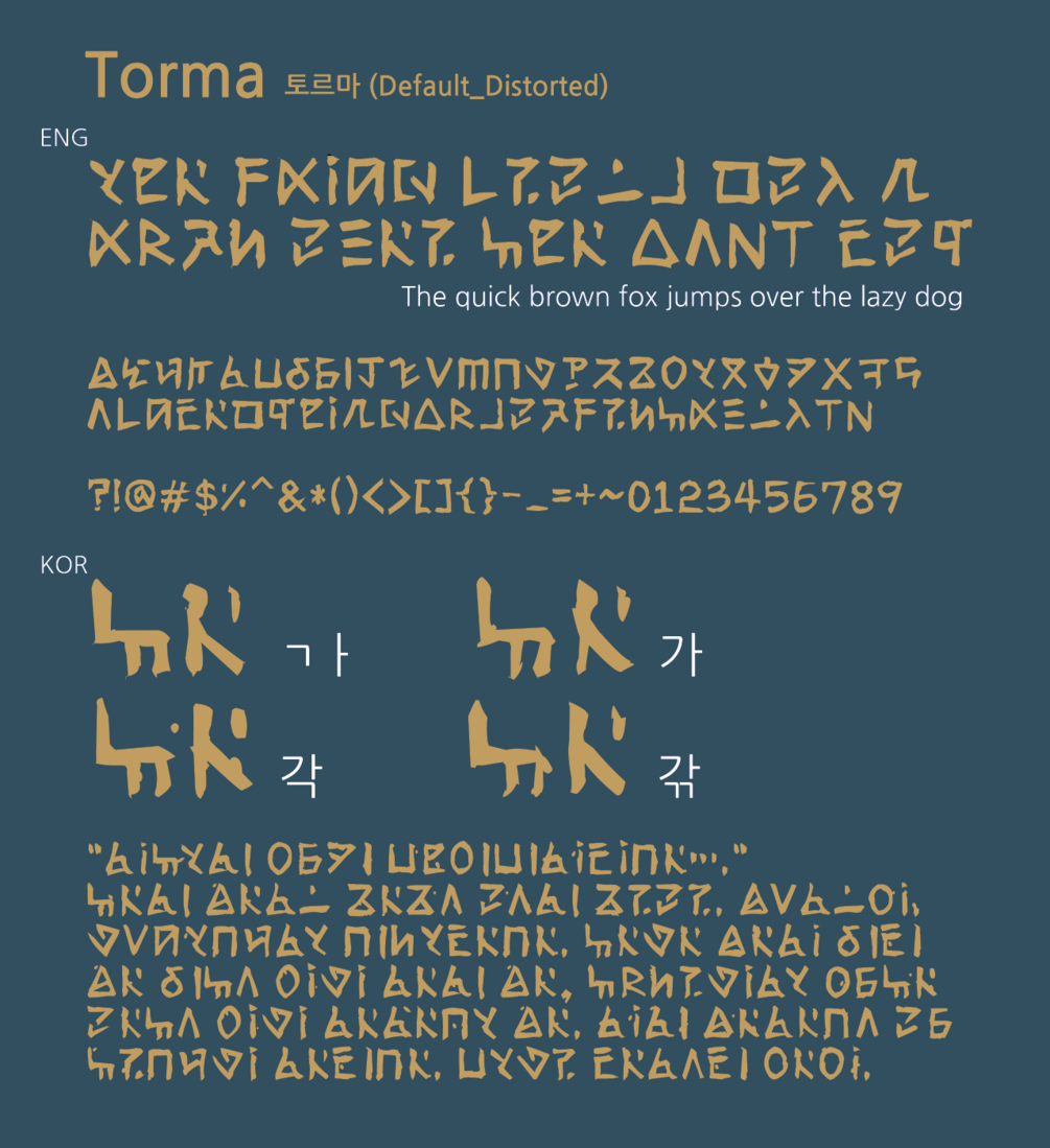토르마는 심플한 직선 위주의 글자로, 가상의 문자나 암호로 사용이 가능합니다.