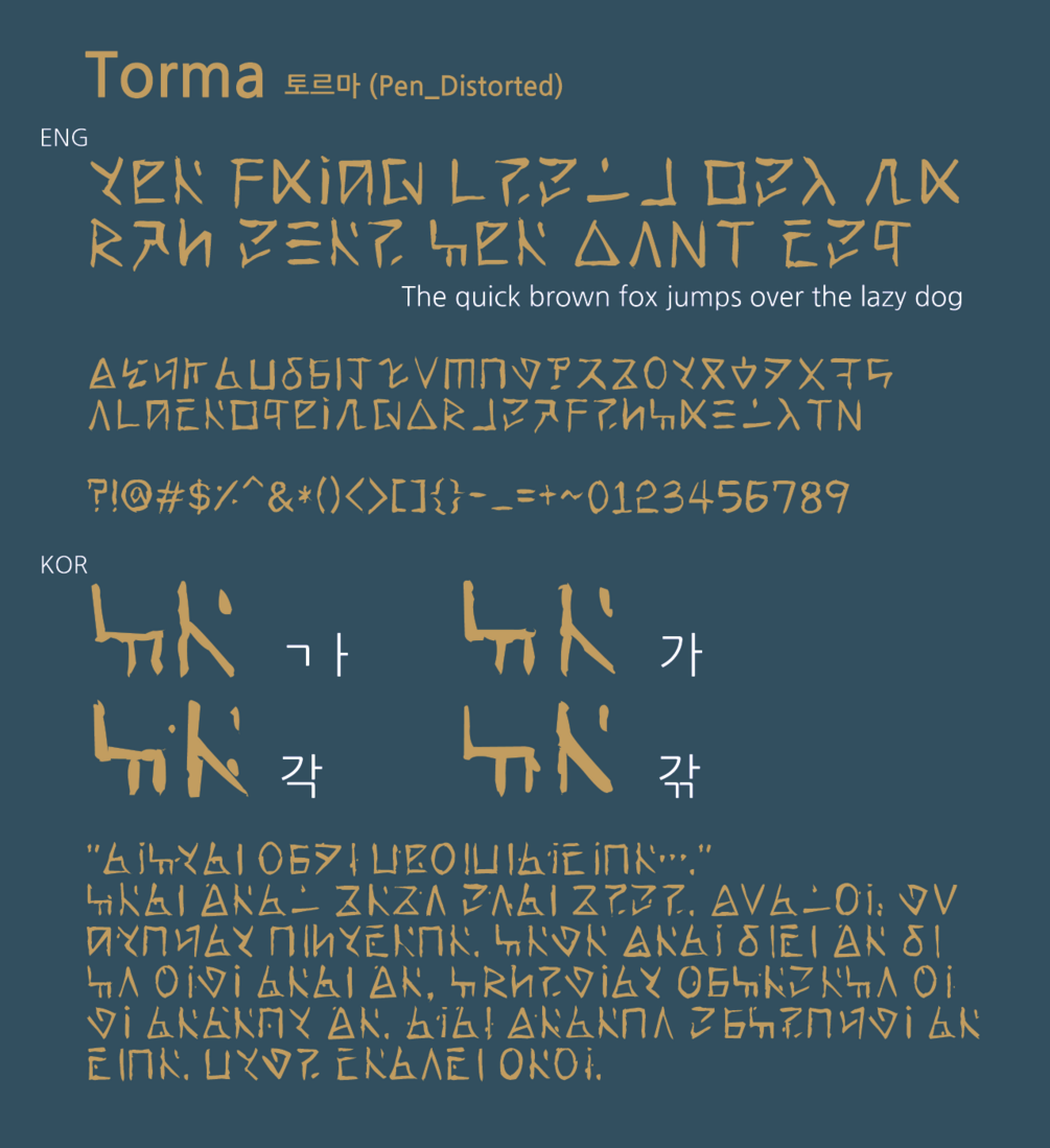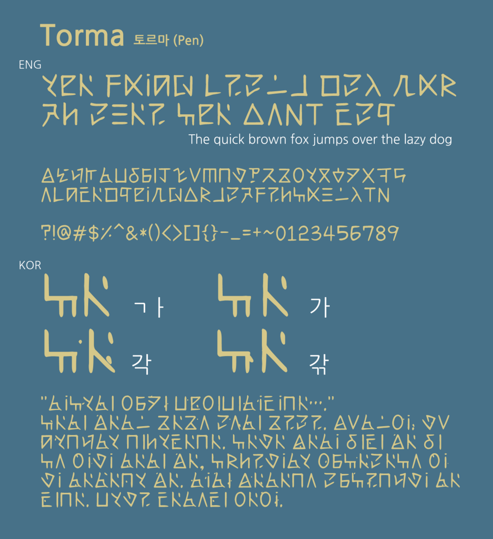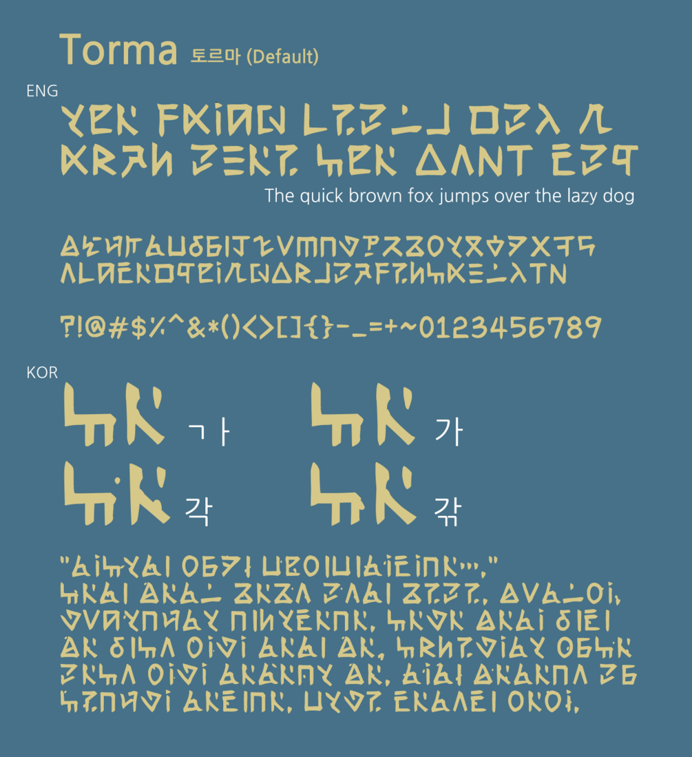 토르마는 심플한 직선 위주의 글자로, 가상의 문자나 암호로 사용이 가능합니다.