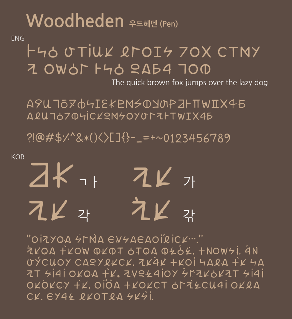 우드헤덴은 영어처럼 대문자와 소문자가 있으며, 가상의 문자나 암호로 사용이 가능합니다.