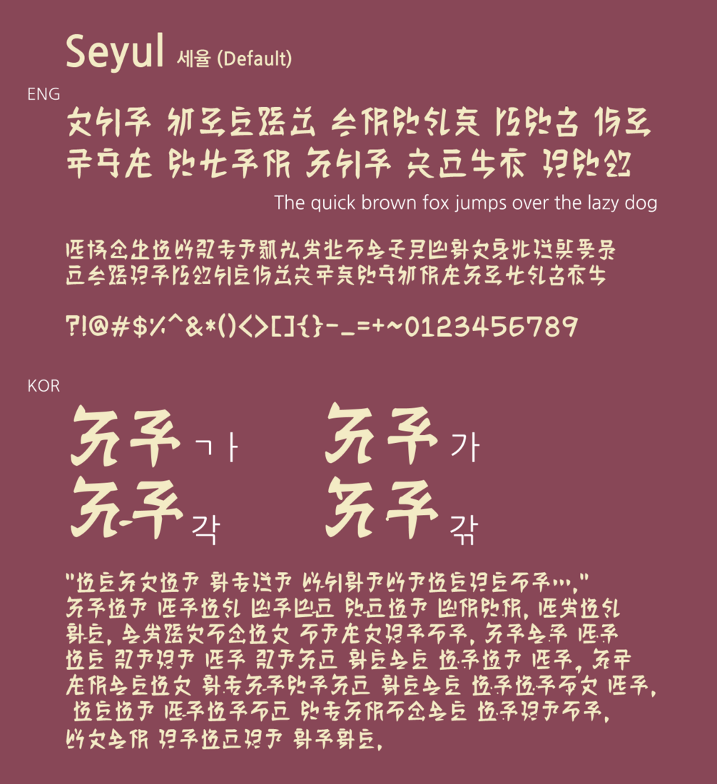 Seyul is inspired by Chinese characters. It is suitable for the Orient-based fantasy world.